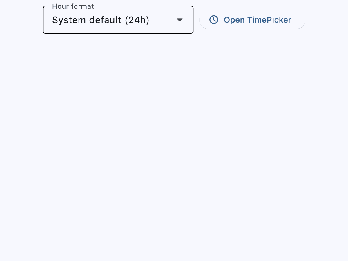 hour_format(TimePickerHourFormat) –Defines the hour format of this time picker.